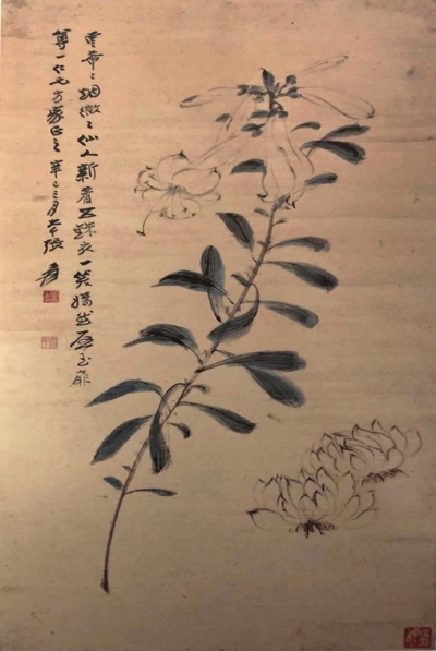 張大千是美食家,他云游海內(nèi)外,所以百味雜融。當他吃到如此美味的百合,贊不絕口。后來,他曾為甘肅莊浪縣人,參加過護法戰(zhàn)爭的楊尊一繪有《百合圖》相贈。張大千繪贈楊的《百合圖》,只見長幅上一株百合以較大的弧形縱呈畫面,枝葉紛披,花朵橙紅嬌艷,鱗莖碩大,張大千還題跋曰:“云希希,煙微微,仙人新著五銖衣,一笑嫣然喜玉扉。”這段題跋很美,意思是說:云煙稀微縹緲,畫中的百合花剛剛開放像是仙女穿上了光彩奪目的仙衣,在美麗的笑容中開門(迎接觀者)。如今這幅畫珍藏于甘肅省博物館中。