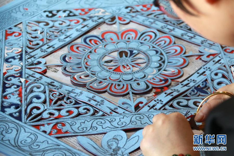 在甘肅敦煌小鎮(zhèn)鳴沙書院,“敦煌剪紙”酒泉市級非物質(zhì)文化遺產(chǎn)代表性傳承人莊生娟在自己的工作室內(nèi)創(chuàng)作(2020年12月31日攝)。新華社發(fā)(張曉亮 攝)