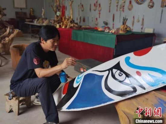 取材、挖空、刨光、勾線、著色……經(jīng)過這些步驟,一個(gè)馬勺臉譜就完成了。馬勺臉譜由中國(guó)民間社火臉譜演化而來(lái),已有數(shù)千年歷史,系列產(chǎn)品主要包括馬勺臉譜、梭子臉譜、鏟子臉譜、木锨臉譜等。9月初,甘肅省隴南市徽縣馬勺臉譜的省級(jí)傳承人馬龍,依舊在工作室創(chuàng)作。今年47歲的他,堅(jiān)守馬勺臉譜的制作技藝已有20余載,不僅傳承了社火臉譜和京劇臉譜的古韻,而且創(chuàng)新了貼金、刻繪等技藝,在傳統(tǒng)中融入了現(xiàn)代造型和色彩元素。它的作品在網(wǎng)絡(luò)引起熱議:“臉譜畫在梭子上,厲害了。”“寶藏非遺,期待下次打卡。”