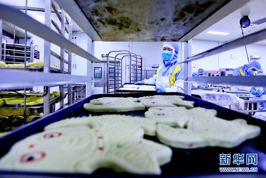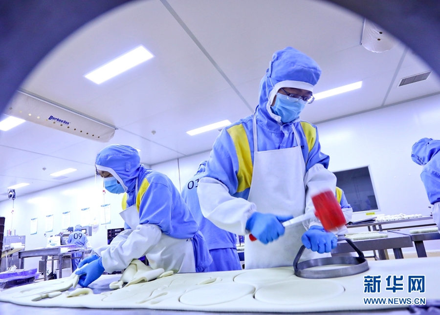 9月9日,甘肅省張掖市甘州區(qū)一月餅加工車間內(nèi),工作人員正忙碌制作中秋“土月餅”。新華網(wǎng)發(fā) (王將 攝)
