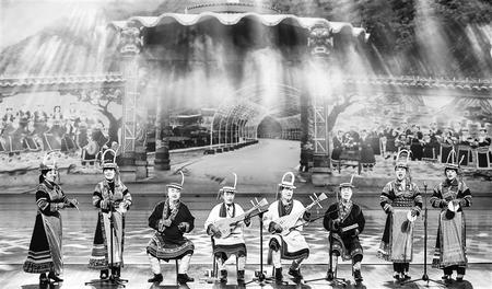 “白馬山寨的火把點(diǎn)亮,土琵琶彈出心中歡暢……”第四篇章《盛世歡歌》由文縣土琵琶彈唱、藏族鷹笛、格薩爾史詩(shī)說(shuō)唱、瑪曲龍頭琴?gòu)棾冉M成,集中展示了我省豐富多彩的民族文化特色。其中,土琵琶彈唱起源于漢代,發(fā)展于唐、宋、元時(shí)期。琵琶彈唱蘊(yùn)藏著大量獨(dú)特的音樂(lè)元素,是民族文化中獨(dú)有的瑰寶。2017年,文縣土琵琶彈唱被列入第四批省級(jí)非遺名錄。