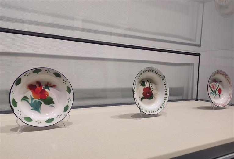 本次展出的156件展品均為蘭州搪瓷廠藝術(shù)底稿和實(shí)物,目前由甘肅三木自行車博物館收藏,其中搪瓷手繪設(shè)計(jì)圖稿65幅,搪瓷器皿91件。展出手繪設(shè)計(jì)圖稿均為蘭州搪瓷廠王村等人設(shè)計(jì)繪圖,分為湯盆、面盆、菜盤、茶盤4大類:圖案內(nèi)容有花鳥、人物、動物、客輪、軍艦,包括經(jīng)典圖案“紅雙喜”“幸福”“美好”等,大小尺寸由26至38厘米之間。器皿類搪瓷有盆類、盤類、缸類、碗類。展覽充分體現(xiàn)了蘭州搪瓷廠設(shè)計(jì)室及工人們在繼承傳統(tǒng)陶瓷工藝的基礎(chǔ)上有了創(chuàng)新和鮮明的時(shí)代特色。