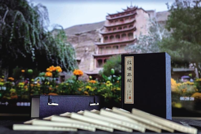 兩個月后,我如愿以償?!抖鼗捅炯o(jì)》繁體線裝本(限量版)出品,兩函,每函八冊,總計十六冊,繁體豎排,全手工裝訂。技藝之美,工序之繁,裝幀之考究,未之見過!當(dāng)我打開拿到手上時肅然起敬,自然會靜下來,恭恭敬敬翻閱,你能感受到甘肅豐富的歷史文化資源、厚重的文化積淀和波瀾壯闊的滄桑巨變。正是偉大的藝術(shù)和同樣偉大的宗教,在敦煌建筑了人類精神的輝煌莫高窟,人們生活在其中,才擁有現(xiàn)實人生意義的充實感和踏實感。