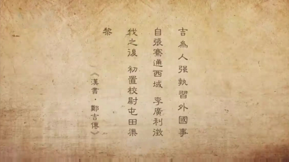 今天“甘肅簡(jiǎn)牘之西域往事”的主人公鄭吉,《漢書(shū)》有其傳。為其作傳的班固在文中對(duì)鄭吉的評(píng)語(yǔ)中,有一句為我們耳熟能詳?shù)脑?huà):