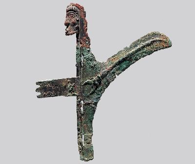 鷹是一些游牧民族崇拜的猛禽,十分威猛。青銅鷹首為軸桿類頂端的飾物,部族首領手執(zhí)桿頭有鷹首的器物以象征權威和神圣。