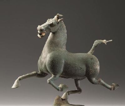 造型矯健精美,作昂首嘶鳴,疾足奔馳狀,被認為是東西方文化交往的使者和象征,為中國旅游的標志。