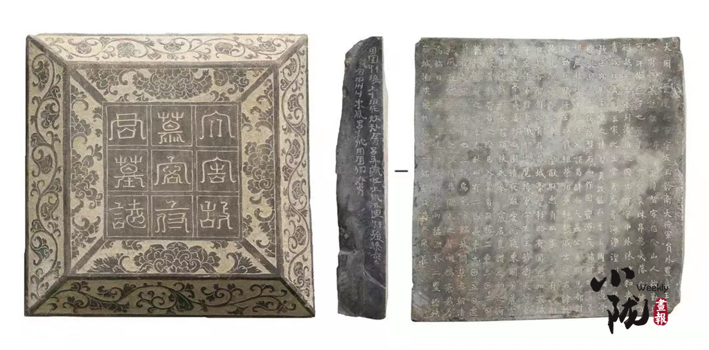 甬道正中出土墓志一合,時(shí)代明確,內(nèi)容豐富,顯示墓主為吐谷渾末代國(guó)王慕容諾曷缽第三子,“大周云麾將軍守左玉鈐衛(wèi)大將軍員外置喜王”慕容智。墓志首次提及武威南山區(qū)“大可汗陵”的存在,墓志左側(cè)面還刻有兩行利用漢字偏旁部首合成的文字,初步判斷為吐谷渾文,是目前所見(jiàn)依據(jù)漢文創(chuàng)造的年代最早的游牧民族文字。