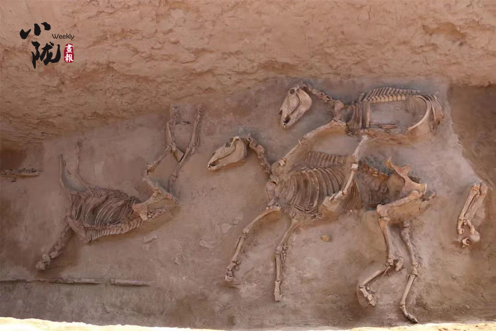 墓道內(nèi)均有整馬殉葬,1-3匹不等,亦見(jiàn)有燒殉的羊骨、牛骨等。墓室內(nèi)出土有漆、木、陶、石、革及各類金屬器等隨葬品290余件,以殘漆木器居多,部分漆木器上有彩繪,并貼有金、銀箔,做工精美,裝飾華麗。