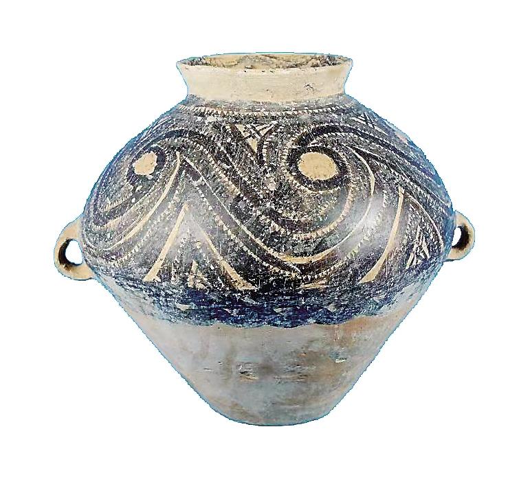 姓名:馬家窯文化半山類型漩渦紋雙耳彩陶罐 出生年代:距今約4650—4350年左右 住址:積石山縣博物館 體型:高34厘米,口徑15.7厘米,腹徑109.9厘米,底徑13厘米 自我描述: 我是國家二級文物。我們半山類型彩陶家族成員主要有大型貯藏器壺、甕、罐等。1988年積石山縣癿藏鄉(xiāng)吊地屲村一村民將我捐贈給博物館。泥質(zhì)紅陶造就的我,撇口,束頸,溜肩,腹部飾對稱的雙耳,施黑彩,肩腹部有四方連續(xù)漩渦鋸齒紋,下飾一周水波紋。胎體光亮,紋飾細(xì)膩規(guī)整。