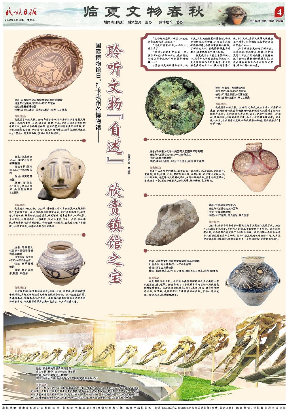 為了讓讀者更好地了解歷史、熱愛文物,燃起學(xué)習(xí)、發(fā)掘、研究臨夏悠久歷史文化的熱情,本報(bào)特挑選了我州各博物館的鎮(zhèn)館之寶,讓這些精美藏品自己告訴你歷史智慧,帶給你信心和力量。