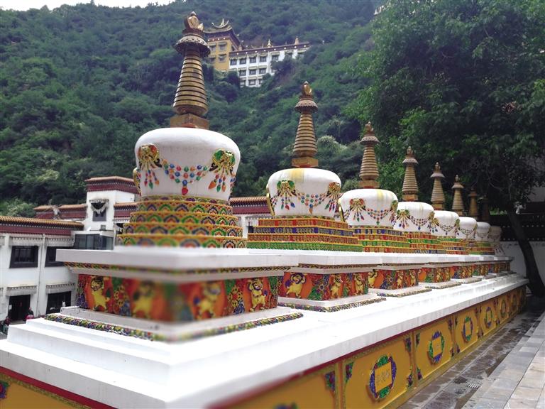 蘭州石佛溝靈巖禪寺坐落在石佛溝腹地,位于蘭州市區(qū)南16公里處的石佛溝國家森林公園內(nèi),是藏傳佛教格魯派(黃教)寺院。石佛溝寺廟發(fā)現(xiàn)于清初,山崖上發(fā)現(xiàn)了—個(gè)石洞,洞壁上有石佛像。嘉慶(公元1796年—1820年)時(shí),有僧人化緣募捐,修建石佛寺,并長年住持,石佛溝也因此而得名。北魏太武帝拓跋燾神麚四年(公元431年),鮮卑族首領(lǐng)、吐谷渾白蘭王慕容貴以己隱修之石佛溝靈巖洞為基,拓展建成寺院,因洞內(nèi)有石刻佛像,遂取名“石佛寺”。該寺在清后兩度被毀,2008年重建。寺內(nèi)建有八座白塔,壯觀雄渾。