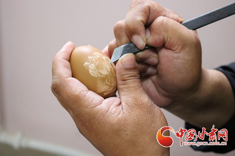 教學之外,劉財萬對傳播絲路文化同樣興趣濃厚。2018年劉財萬作為甘肅省殘聯(lián)代表之一參展絲綢之路(敦煌)國際文化博覽會,并為會上沿線城市所展示的歷史文化、民俗風情、現(xiàn)代文化創(chuàng)新成果所折服。從那之后,劉財萬開始將絲路文化融入蛋雕之中,讓蛋雕成為絲路文化歷史傳承的創(chuàng)新載體。
