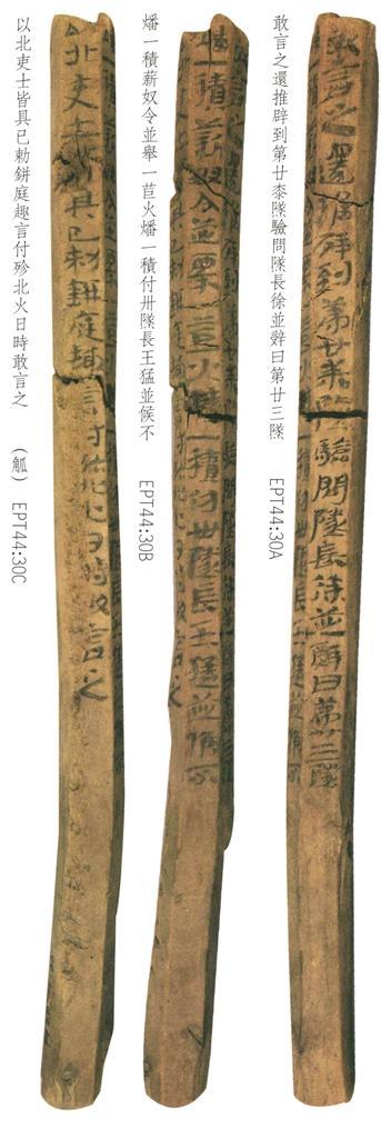 古時在竹簡上記事,先以火烤青竹,使水分如汗?jié)B出,便于書寫,并免蟲蛀,這道工序叫汗青,將竹火炙去汗后,刮去青色表皮,以便書寫和防蠹?xì)⑶?,這就是殺青,殺青完成后,簡才能供書寫所用。漢劉向《別錄》中說:“殺青者,以火炙簡令汗,取其青易書,復(fù)不蠹,謂之殺青,亦謂汗簡。”古人以“汗青”喻史書,如文天祥就寫有“人生自古誰無死,留取丹心照汗青”的詩句。木簡是否也存在類似的“殺青”工序, 文獻(xiàn)沒有記載, 陳夢家考察武威出土的木簡, 認(rèn)為除少數(shù)受潮彎曲外, 十分之九都是平直的, 是經(jīng)過風(fēng)干工序的。