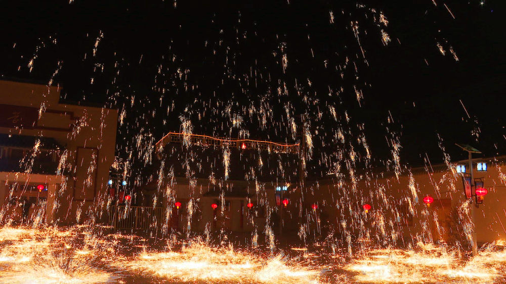 “打鐵花”是流傳于景泰縣的傳統(tǒng)習(xí)俗之一,源于明代中晚期。明萬(wàn)歷年間,景泰地境為蒙古韃靼部落占據(jù),萬(wàn)歷二十七年,為了驅(qū)逐韃靼,于賀蘭山以西構(gòu)筑了黃河索橋至大靖泗水堡的邊防,屯軍駐守。因軍隊(duì)制造兵器和修補(bǔ)農(nóng)具之需,許多鐵匠被充軍戍邊,張?zhí)┤宓南茸?,鐵匠出身的張鐵蛋自此舉家隨軍由山西到了蘆塘堡(今蘆陽(yáng)鎮(zhèn)政府所在地),他充分運(yùn)用自己的生活經(jīng)驗(yàn)和所掌握的技藝,摸索出了打鐵花的基本工序。