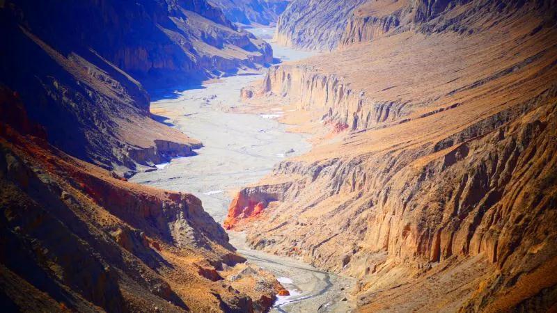 在漫漫歷史長(zhǎng)河中,馬營(yíng)河大峽谷經(jīng)過風(fēng)吹日曬,在祁連山下形成了陡峭突兀的深溝險(xiǎn)坡。大峽谷內(nèi),清澈見底的河水順著蜿蜒小道而下,令人嘆為觀止。馬營(yíng)河大峽谷集雄、奇、險(xiǎn)、秀為一體,峽谷底部清溪流淌,峽谷盡頭雪山聳立,平坦的崖頂云霧迷蒙,整個(gè)畫面壯觀雄偉,可以說,馬營(yíng)河大峽谷可以與美國(guó)科羅拉多大峽谷相媲美。