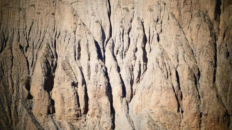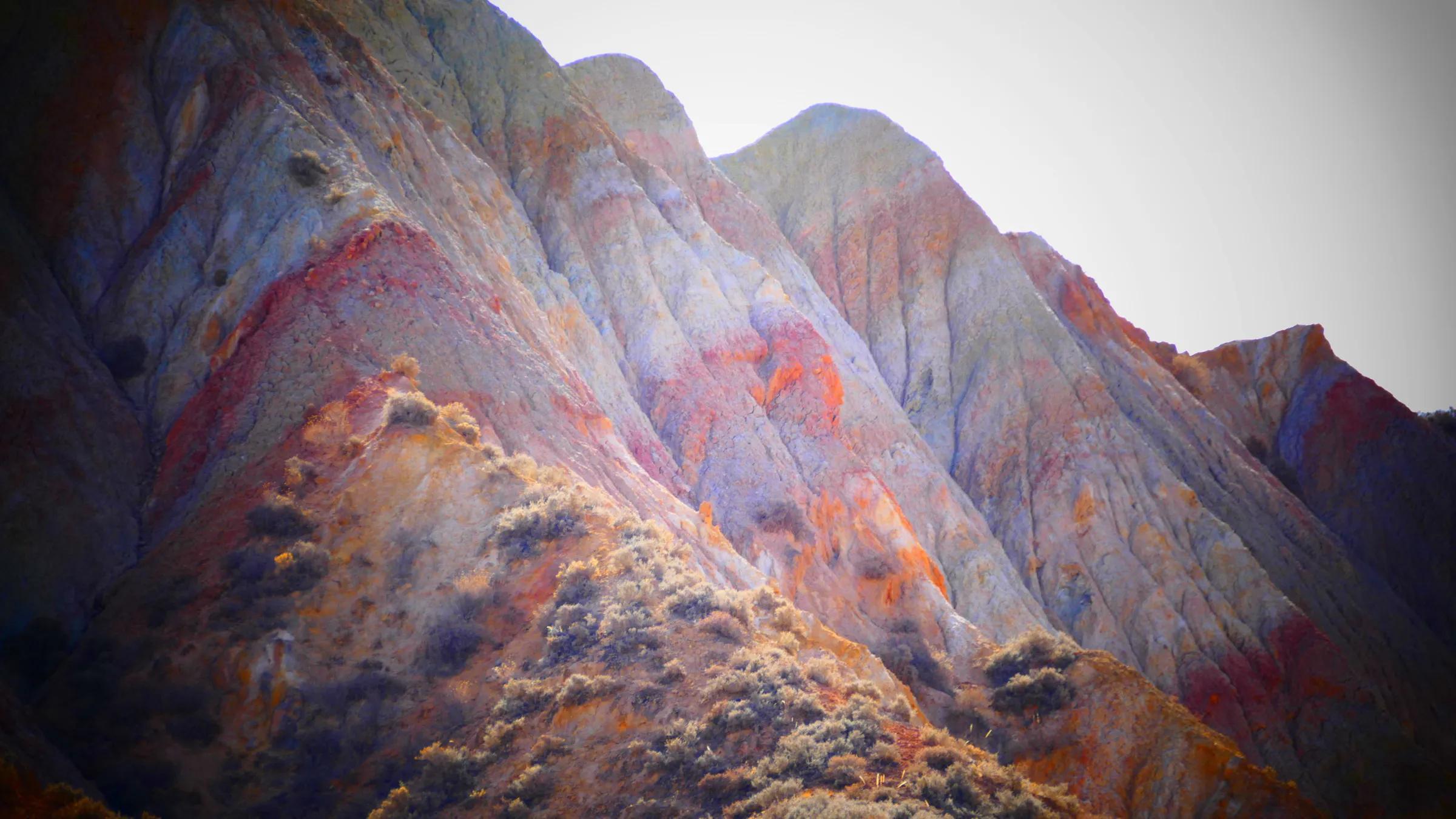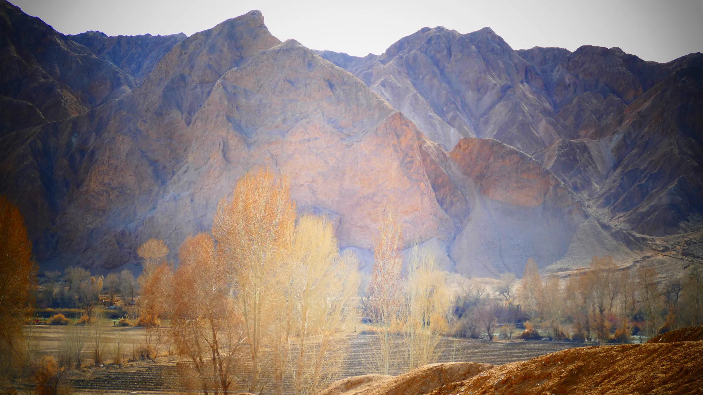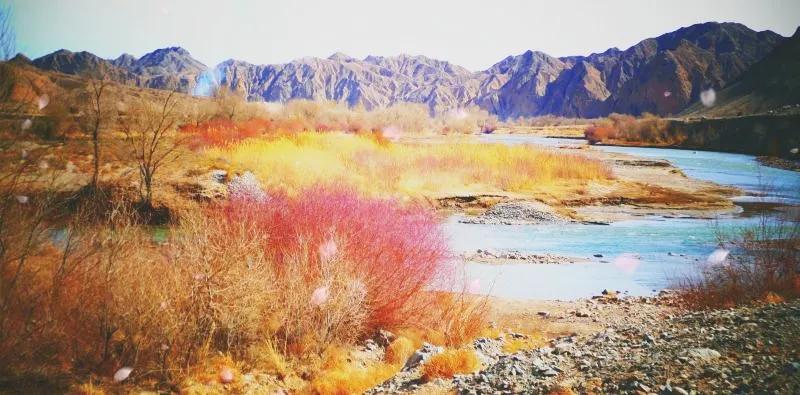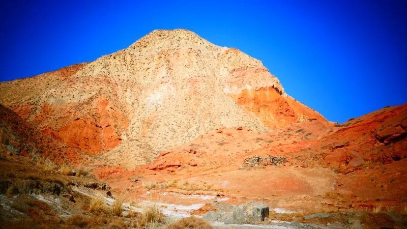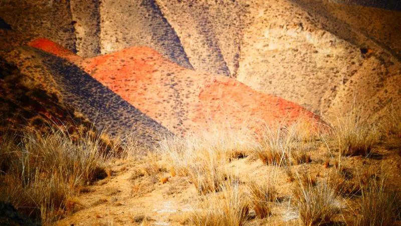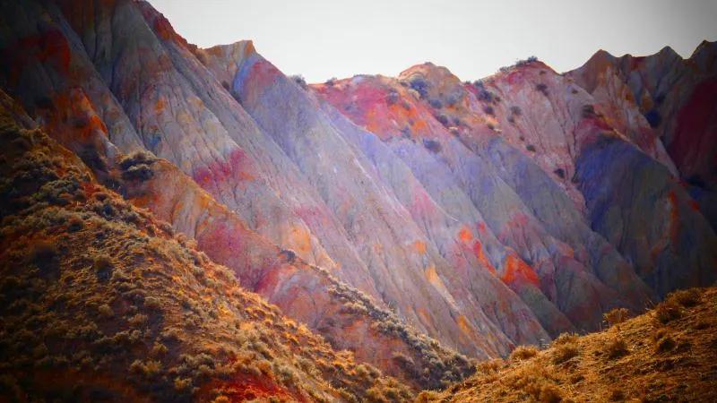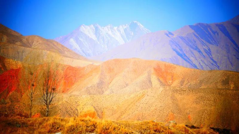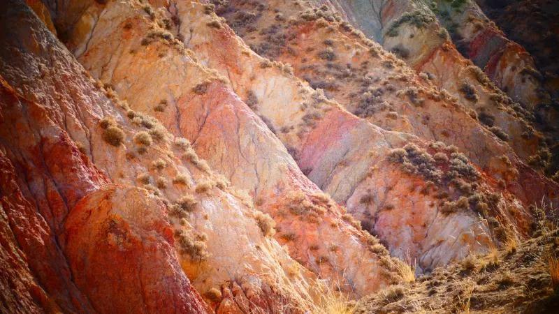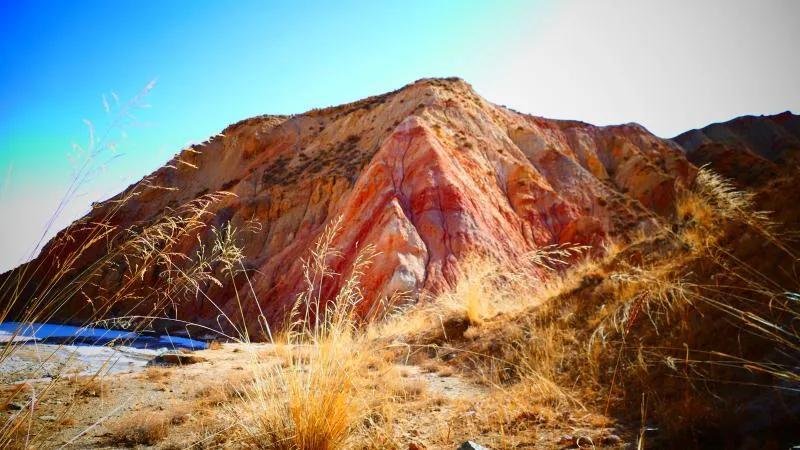 從馬營(yíng)河大峽谷南端再向南一眼望去就是祁連雪山,沿著河道通過高臺(tái)縣新壩鎮(zhèn)的紅沙河村,向東南走進(jìn)祁連山脈可見一片五顏六色的奇觀,又一個(gè)丹霞地貌在祁連山展現(xiàn),可稱高臺(tái)“小泉丹霞〞。據(jù)說這個(gè)“丹霞”還沒有媒體“曝過光〞。