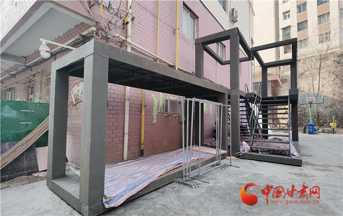 在甘肅省歌劇院辦公樓的西側(cè),一組五米高的兩層鋼架結(jié)構(gòu)赫然出現(xiàn)在記者眼前,這組“大家伙”前后制作了兩三個(gè)月時(shí)間,光是使用的角鋼就有一兩噸重,而舞臺(tái)上極具視覺沖擊力的“九宮格”截面圖,就是通過三組移動(dòng)支架,儼然拼積木般進(jìn)行位移組合來完成的。同時(shí),通過位置的偏移,還將實(shí)現(xiàn)宿舍、工地、工棚以及生活場(chǎng)景的轉(zhuǎn)換。