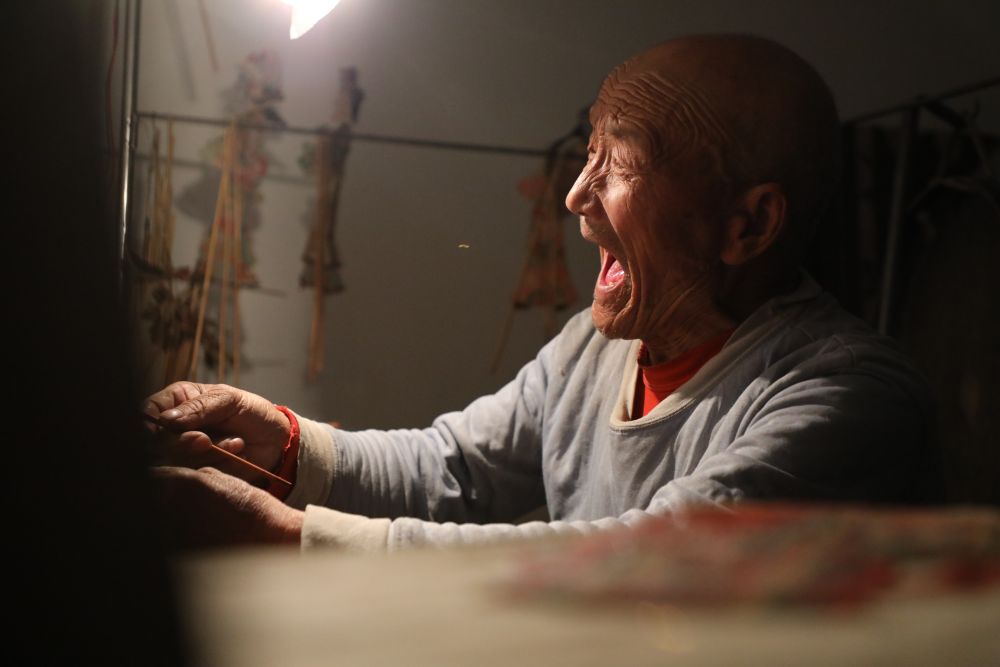 敬廷佑正在進(jìn)行道情皮影表演。新華社記者 張睿 攝
