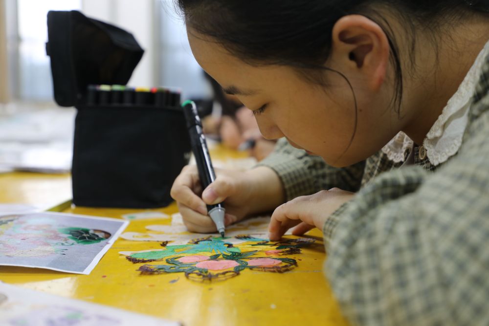 在甘肅省環(huán)縣職業(yè)中專,這項(xiàng)傳統(tǒng)藝術(shù)迸發(fā)出鮮活色彩。