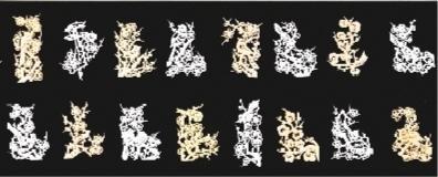 所剪的梅花枝干千姿百態(tài),變化多端,有粗有細(xì)、有長(zhǎng)有短。梅花花朵有大有小,有的含苞未放,有的正在盛開(kāi)。所剪的喜鵲也是形態(tài)多樣,有的在枝頭歡唱,有的在花間飛翔,有的竊竊私語(yǔ),有的比翼雙棲,給人以喜氣又可愛(ài)的視覺(jué)效果。共分為8幀圖卷,分別為《寒梅吐艷》《喜梅報(bào)春》《一門(mén)喜事》《雙喜盈門(mén)》《喜事連連》《梅開(kāi)五?!贰兜歉咄h(yuǎn)》《喜上眉梢》。