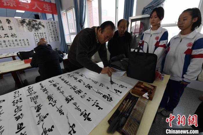 中新網(wǎng)蘭州12月25日電 (戴文昌)為繼承和弘揚(yáng)中華優(yōu)秀傳統(tǒng)文化,培養(yǎng)中小學(xué)生書寫基本技能訓(xùn)練和書法審美教育。25日,甘肅省政府文史研究館“書法進(jìn)校園公益活動(dòng)”啟動(dòng)儀式暨首場(chǎng)專題講座在蘭州交通大學(xué)附屬中學(xué)舉行。