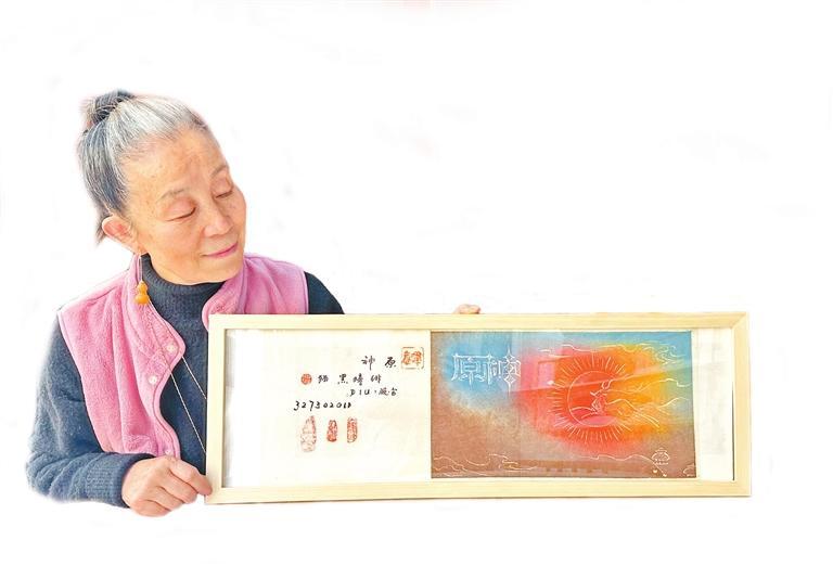 阮琦和她的拓印畫(huà)作品。