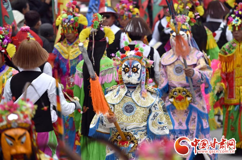 2024年2月19日,甘肅省隴南市武都區(qū)魚龍鎮(zhèn)柏家溝村,村民在表演當?shù)靥厣珓》N、國家級非物質文化遺產(chǎn)——高山戲。