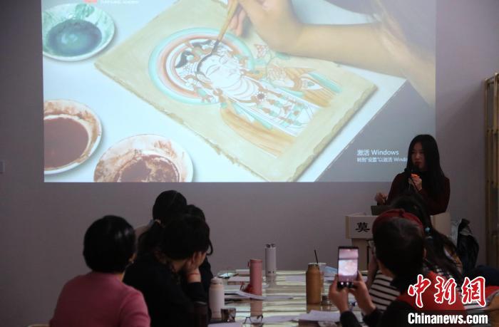 2023年2月,在敦煌研究院莫高學(xué)堂,研學(xué)導(dǎo)師給學(xué)員講授敦煌壁畫臨摹技法。張曉亮 攝