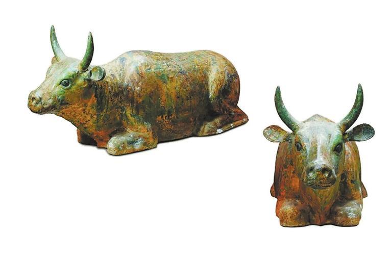 這座鎏金銅牛肌肉線條清晰、流暢,目光炯炯,望向前方。就像休息中的老黃牛聽(tīng)到了主人的召喚,準(zhǔn)備起身開(kāi)始勞作。