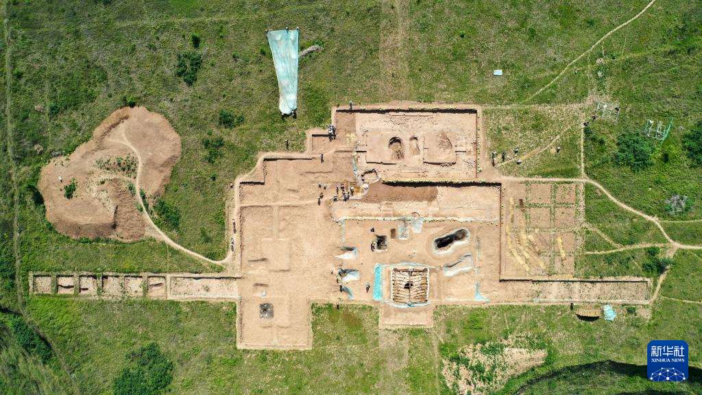 這是2022年6月10日拍攝的甘肅省隴南市禮縣四角坪遺址考古發(fā)掘現場(無人機照片)。新華社記者 陳斌 攝