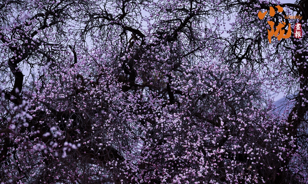 大面積杏樹(shù)應(yīng)季綻放,將一片片大地披上春天的“盛裝”,紫色的杏花,為大地寫(xiě)滿了詩(shī)行,編織出一幅美麗的鄉(xiāng)村畫(huà)卷。