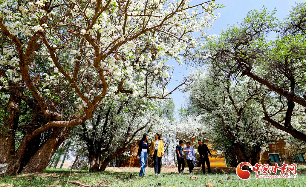 初夏時節(jié),位于祁連山下的山丹縣大馬營鎮(zhèn)焉支花谷里,梨花、楸子花、海棠花等各色花朵盛放,游人和孩子們的嬉笑聲不絕于耳,整個花谷形成動靜結合的美。
