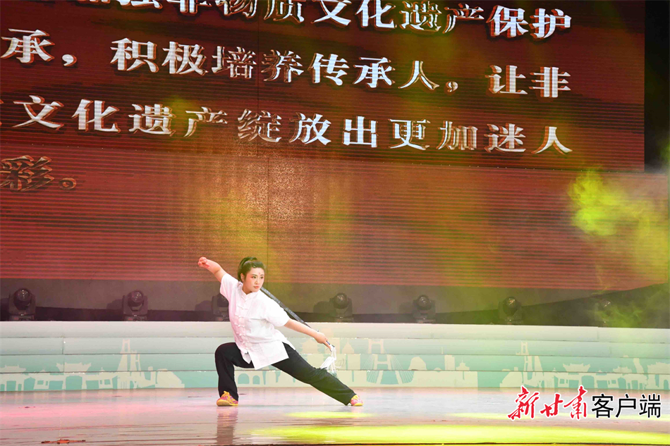 作為華夏文明的重要發(fā)祥地,這里還擁有深厚的文化底蘊(yùn)和富集的非遺資源:現(xiàn)有國家級非遺項目8項、省級50項、市級180項,各類非物質(zhì)文化遺產(chǎn)在八千年的歷史中不斷傳承與發(fā)展?;顒蝇F(xiàn)場,清水木人摔跤、武山武術(shù)、秦州夾板舞等節(jié)目展示了這片文化積淀深厚的黃土地上產(chǎn)生、流傳和發(fā)展的“文化絕活”。