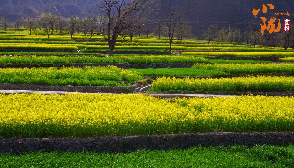 從這里望去,群峰逶迤綿延,山腳下梯田相連成片,伴著山間的涼風(fēng),空氣中彌漫著油菜花的芬芳。