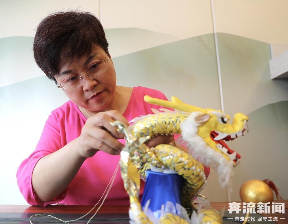 尹麗珺還是當(dāng)?shù)睾砂沁z傳承人。在傳統(tǒng)荷包的傳承上她也加入了自己的創(chuàng)作,如布料、線色以及造型和圖案搭配上都將美好的寓意和傳統(tǒng)文化融入其中,她制作的荷包作品“童趣”“舞獅”“龍騰盛世”等作品在全國工藝品、中國手工藝術(shù)博覽會上多次獲獎。