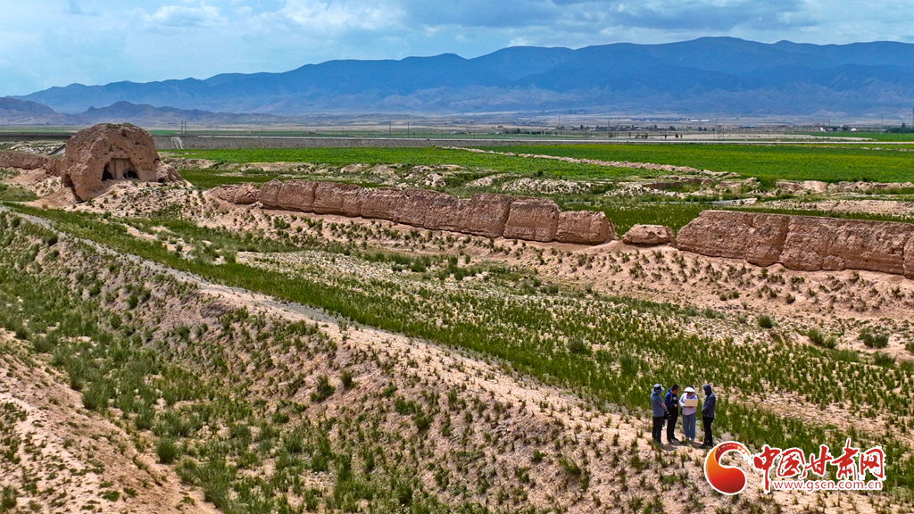 6月27日,甘肅省張掖市山丹縣漢明長(zhǎng)城保護(hù)研究中心工作人員正在峽口古城段進(jìn)行現(xiàn)場(chǎng)勘察和數(shù)據(jù)采集。