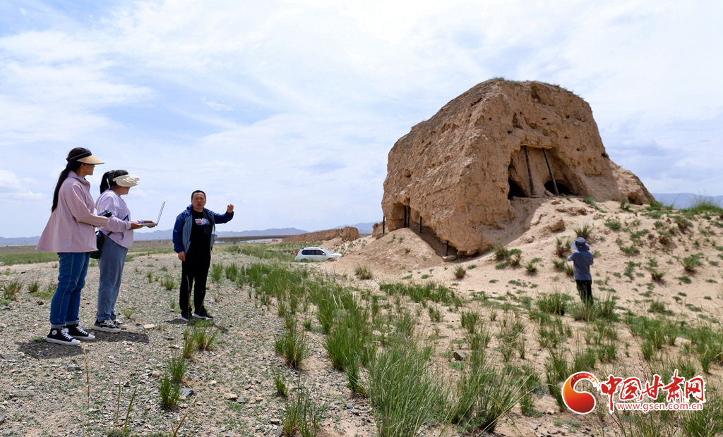 6月27日,甘肅省張掖市山丹縣漢明長(zhǎng)城保護(hù)研究中心工作人員正在金山子漢明長(zhǎng)城段進(jìn)行現(xiàn)場(chǎng)勘察和數(shù)據(jù)采集。