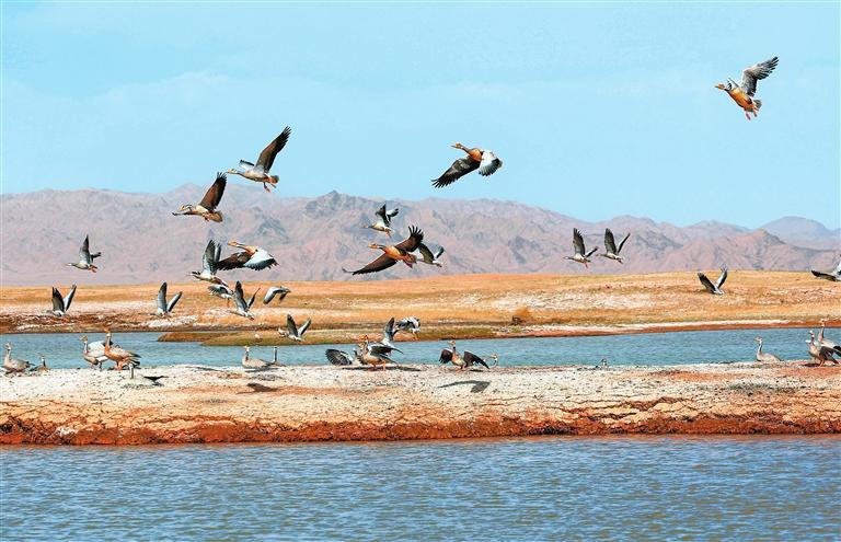 近年來(lái),經(jīng)過(guò)當(dāng)?shù)赜嘘P(guān)部門和甘肅鹽池灣國(guó)家級(jí)自然保護(hù)區(qū)的有效治理和保護(hù),野生動(dòng)物種群逐漸增多。每年遷徙至此繁衍生息的鳥(niǎo)類種群和數(shù)量不斷增加,時(shí)常上演萬(wàn)鳥(niǎo)翔集的壯觀場(chǎng)景,勾勒出一幅和諧壯美的大自然畫卷。
