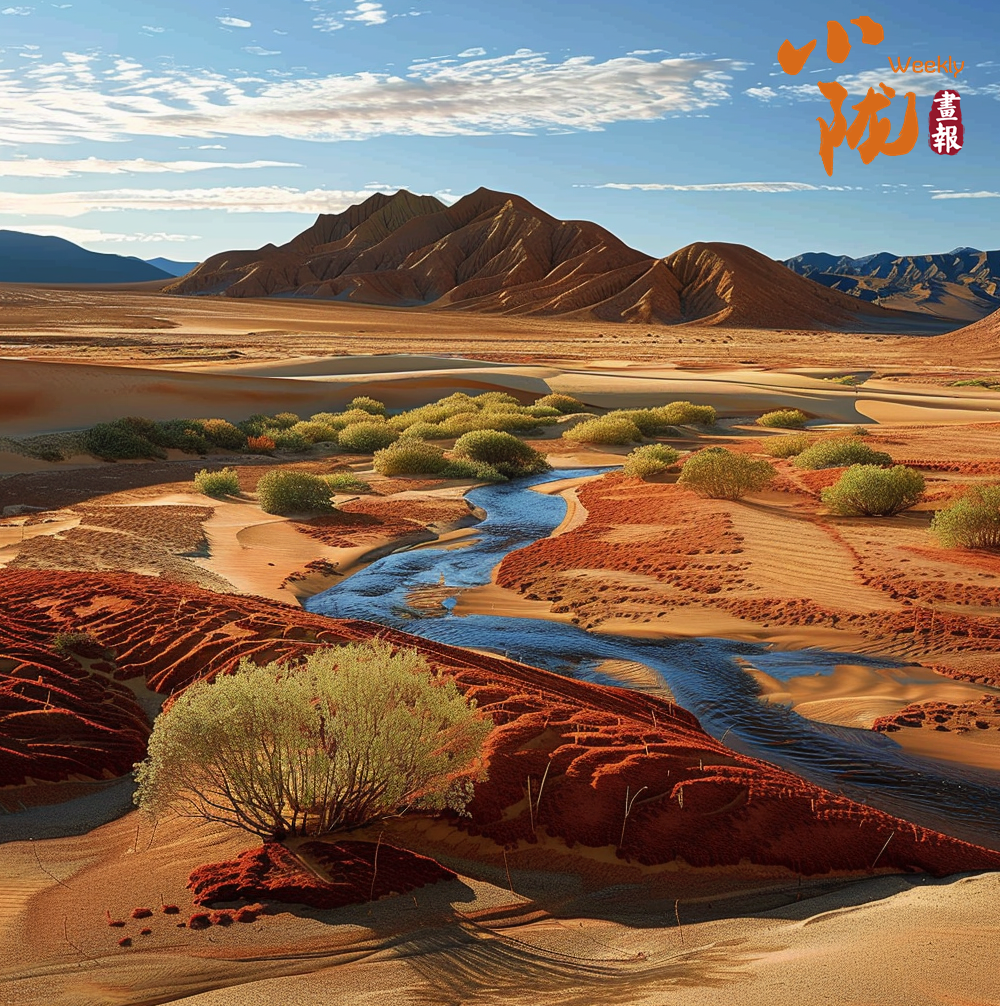 一叢叢紅柳宛如流動(dòng)的彩云,在這蒼茫的戈壁灘上盡情綻放。這種看似平凡卻又充滿(mǎn)生命力的植物,與藍(lán)天白云相映,與沙丘中一蓬蓬的綠色為伍,為這粗狂的戈壁帶來(lái)了無(wú)限生機(jī)。