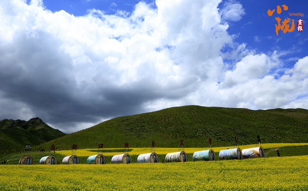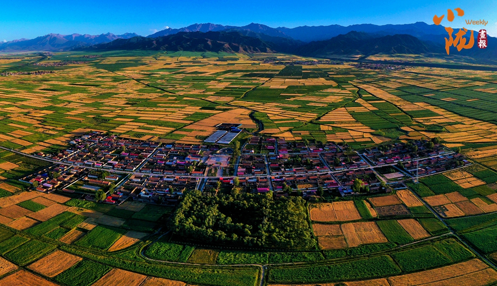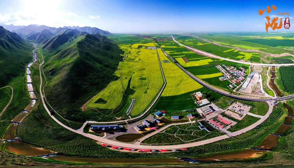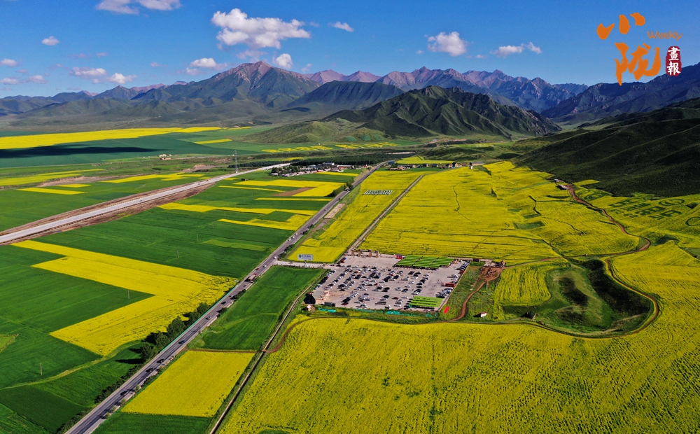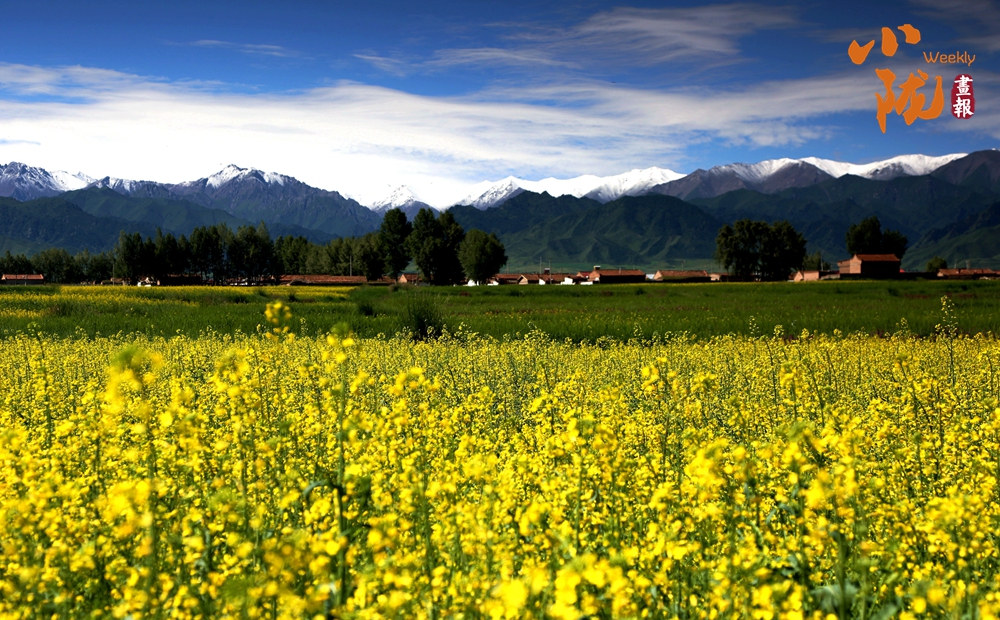 在藍天白云和祁連雪峰的映襯下,那盛開的油菜花、點綴在花海中的村莊人家,勾勒出一幅優(yōu)美的田園風(fēng)光畫卷。