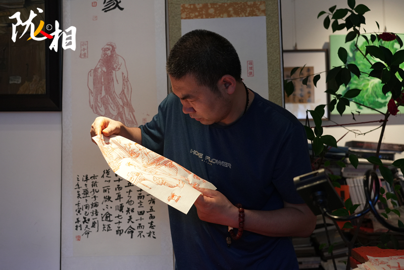 “木刻版畫最困難的步驟,就是能將原圖精準復刻,在雕刻過程中,稍有不慎便會出錯,需要全神貫注投入其中,才能在刀尖上誕生出精美的藝術品。”李安樂說,拓印前要進行刷色,首先需要制作顏料。他選擇了純色拓印,在朱砂粉中倒入明膠,加入水或酒稀釋,攪拌后顏料就制作完成了。接下來便是開始潤板,再開始刷色,最后將紙張覆蓋在木板上進行拓印,在拓印過程中,利用櫚擦或馬蓮進行摩擦拓印,等這一系列操作完成后,一幅栩栩如生的木刻版畫就呈現(xiàn)了出來。