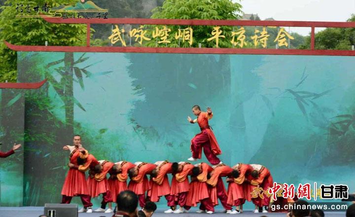 中新網(wǎng)甘肅新聞9月2日電 9月1日,詩意甘肅·絲路長(zhǎng)風(fēng)三千里——“武詠崆峒·平?jīng)鲈姇?huì)”在崆峒山景區(qū)舉行,來自全國(guó)各地的媒體記者、網(wǎng)絡(luò)達(dá)人和游客,以及平?jīng)霎?dāng)?shù)馗刹咳罕姶砉?00余人現(xiàn)場(chǎng)觀看了演出活動(dòng)。