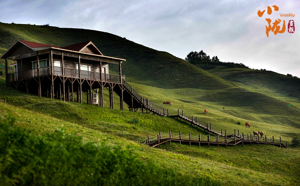 放眼望去,山峰起起伏伏,宛如鋪上了一層綠毯。山巒與草坡、森林及紅瓦白墻映入眼簾,景區(qū)道路伸向遠(yuǎn)方。