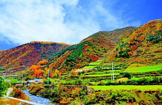層林盡染的上河峪,龍溪河靜靜流淌在金色畫卷深處。掩映在村落間的貢生老宅墨香環(huán)繞,與河畔的闖王磨一起見證著這里的厚重歷史。魚躍山澗,山林秋色浸透,菊花漫來陣陣芬芳,這里多彩的山水訴說著最美的秋日私語。紅葉如火,黃葉如夢,任誰都不舍在這妙境中離去。(文宣)