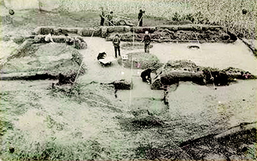 秦安大地灣遺址是1958年發(fā)現(xiàn)的,當時正值全國文物大普查,隨即被列為省級文物保護單位。1978年開始發(fā)掘,總面積110萬平方米,現(xiàn)揭露面積13700平方米,出土房址238座、灰坑357個,墓葬79座、窯38座、灶臺106座,各種骨、石、蚌、陶器、裝飾器和生活器物共計8034件。特別是房屋建筑遺址,不僅規(guī)模宏偉,而且形制復(fù)雜。在發(fā)掘中就被公布為全國重點文物保護單位。