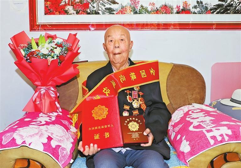 當(dāng)天,平川區(qū)武裝部、退役軍人事務(wù)局的工作人員為胡占學(xué)帶來(lái)了“全國(guó)模范退役軍人”榮譽(yù)證書(shū)、勛章和綬帶,并為老人佩戴了勛章。