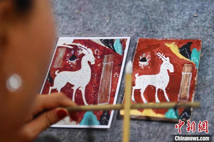 耗費(fèi)了近二十分鐘,年逾七旬的浙江游客夏晴終于在一面盤子大小的泥板畫上完成“九色鹿”的雛形,這讓她感慨“比想象的要難”。“上中學(xué)時(shí)曾在課本里學(xué)習(xí)過(guò)敦煌文化,但直到退休后多年才有機(jī)會(huì)來(lái)親眼看看。”她說(shuō),看過(guò)千年前活靈活現(xiàn)的敦煌壁畫,然后又自己體驗(yàn)繪制過(guò)程,感覺中國(guó)古人很偉大。