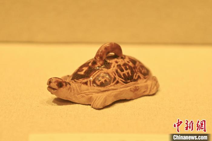 10月27日,在甘肅省博物館內(nèi)展陳的褐釉瓷龜。中新社記者 李亞龍 攝