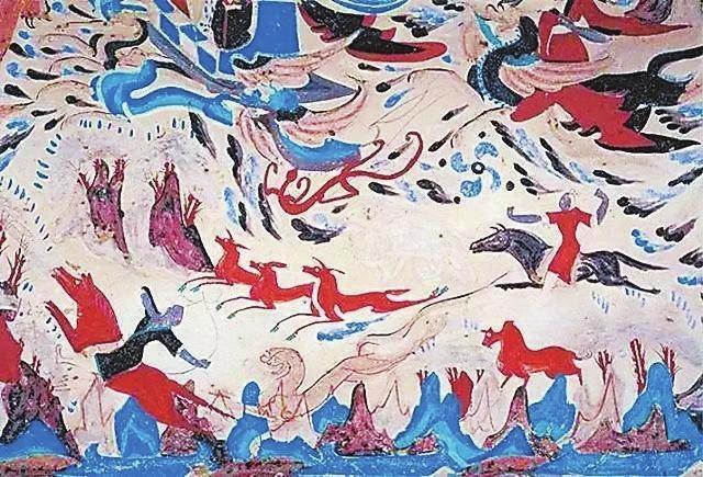 在莫高窟第249窟壁畫中有一幅“行獵圖”:畫面上都是些體型巨大的動物,有體態(tài)矯健的猛虎、疾馳俊逸的鹿群、整裝待發(fā)的獅子等,有在奔馳的駿馬上拈弓搭箭窮追不舍的獵人,還有在飛奔的駿馬上淡定轉(zhuǎn)身從容射虎的獵人。整個畫面既緊張又美好,使人不由得對畫師精湛的技藝心悅誠服。唐代詩人王維在詩作《觀獵》中寫道:“風(fēng)勁角弓鳴,將軍獵渭城。草枯鷹眼疾,雪盡馬蹄輕。忽過新豐市,還歸細柳營?;乜瓷涞裉?,千里暮云平。”意思是說將軍的獵騎,飛馳在渭城的近郊。風(fēng)中傳來呼嘯的弦聲。已枯的野草,擋不住尖銳敏捷的鷹眼,積雪后飛馳的駿馬馬蹄會愈加輕盈。據(jù)文獻記載,唐宋時期人們打獵時多有一種“西北望,射天狼”的豪情!在莫高窟第85窟壁畫中還有一幅“行獵圖”就形象地反映了唐人狩獵的情景:畫面上的四個健碩獵人正在整裝出獵,他們著裝統(tǒng)一:頭戴幞頭,身穿缺胯衫,足蹬半腰靴。打獵的裝備也很不同:有人胳臂上架鷹、有人單手牽犬、有人持弓挎箭囊,甚至還有一人手持利斧。