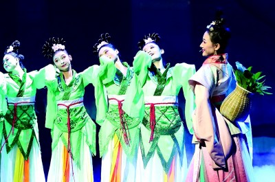 第七屆絲綢之路(敦煌)國際文化博覽會上,演員在表演節(jié)目。新華社發(fā)